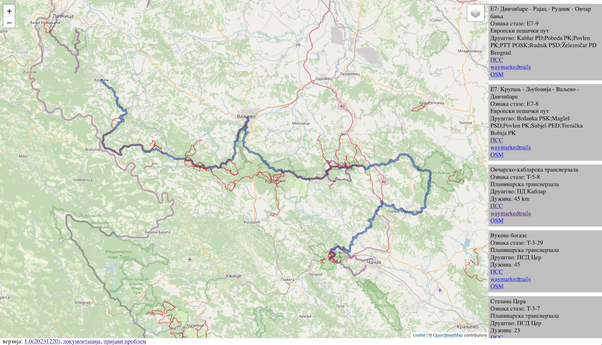 У десном делу се налази листа свих стаза које су тренутно видљиве на мапи. Листу је могуће скроловати.